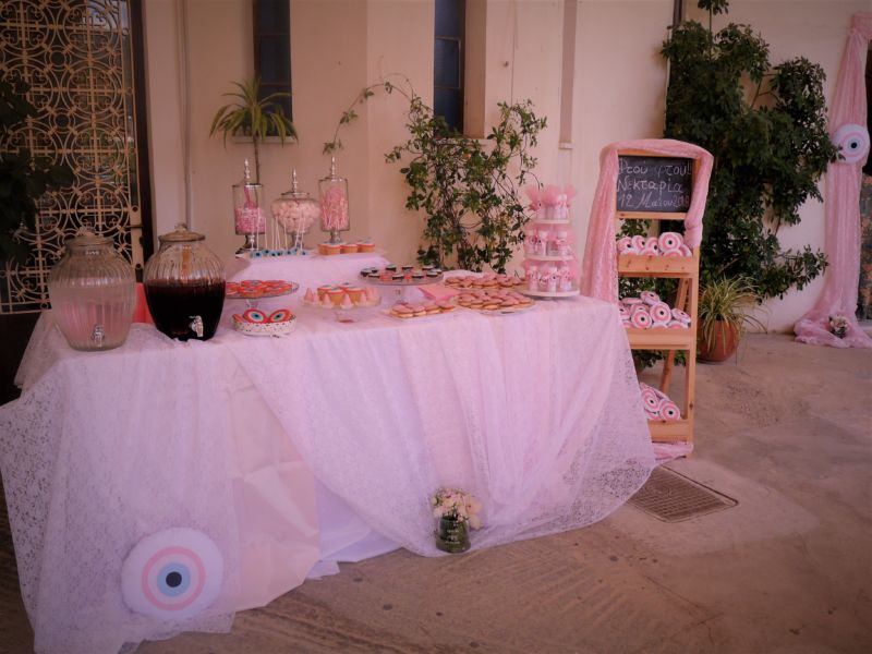 Το Candy Bar (Γλυκό Τραπέζι) αποτελεί το επίκεντρο κάθε εκδήλωσης, προσφέροντας μια ολοκληρωμένη γευστική και οπτική εμπειρία που μαγνητίζει τα βλέμματα.