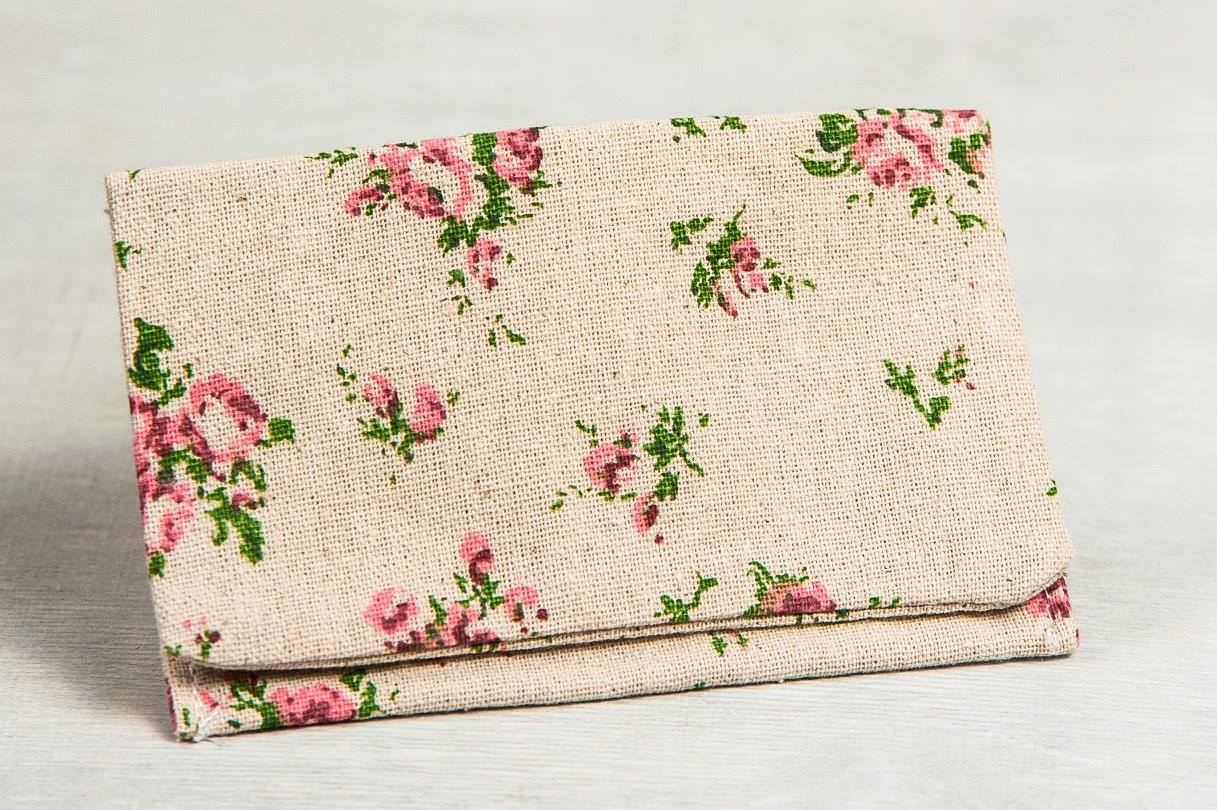 Μπομπονιέρα γάμου φάκελος υφασμάτινος Floral με εσωτερική επένδυση, με πέντε κουφέτα αμυγδάλου.