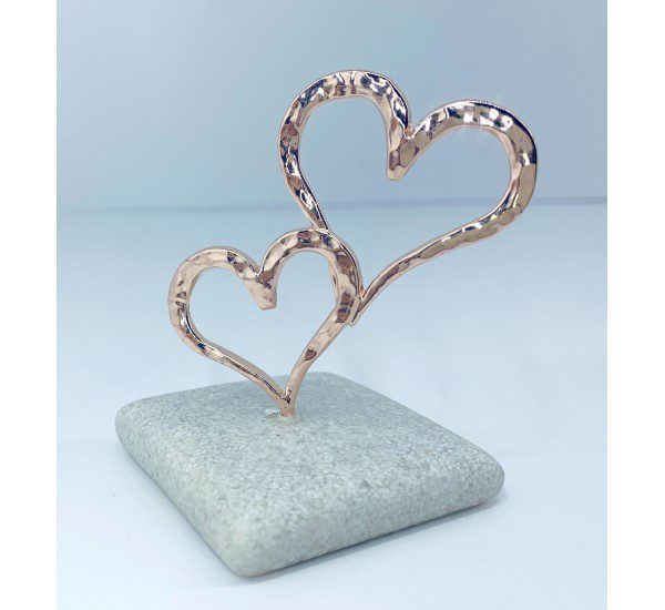 Μπομπονιέρα γάμου ή αρραβώνα σφυρήλατες καρδιές σε μάρμαρο.