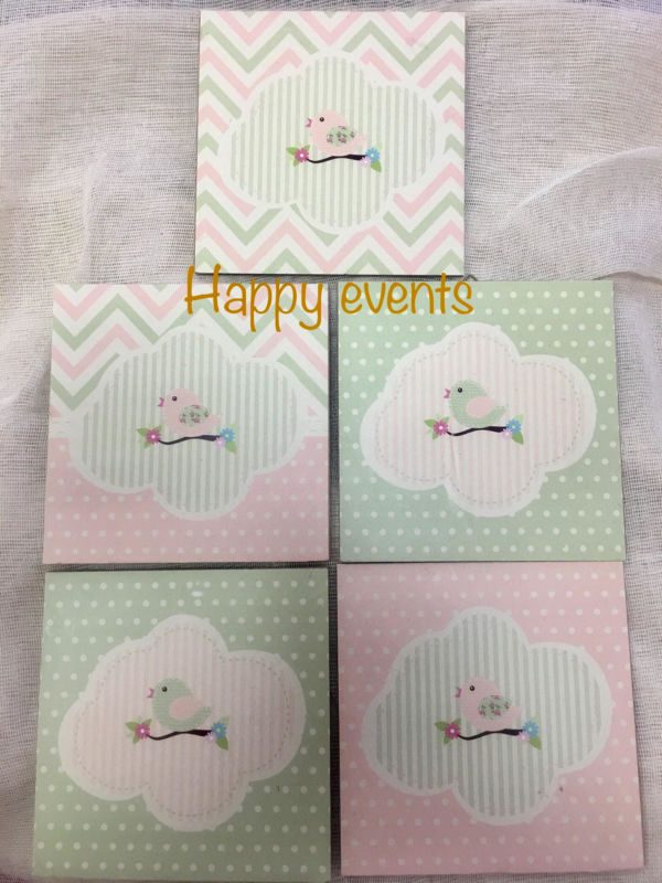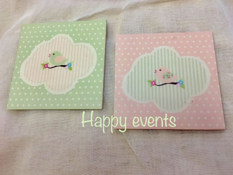 Μπομπονιέρα ξύλινο καδράκι με θέμα πουλάκι τέσσερα σχέδια,σεβρόν,πουά,ρίγες,βεραμάν,σομόν χρώμα.