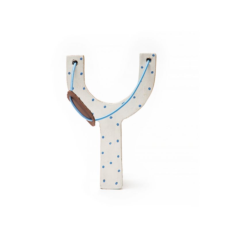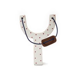 Μπομπονιέρα ξύλινη σφεντόνα σε τέσσερα χρώματα: Λευκή με μπλε πουά, Λευκή με κόκκινο πουά, Λευκή με σιέλ πουά και Λευκή με ροζ πουά.