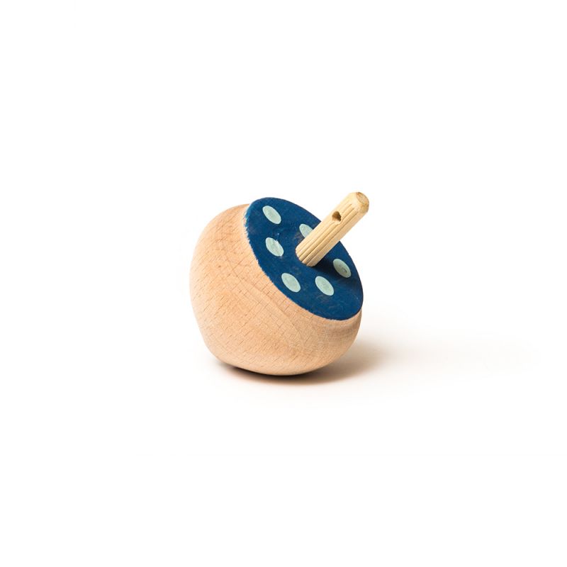 Μπομπονιέρα βάπτισης παραδοσιακή ξύλινη σβούρα ζωγραφισμένη στο χέρι με πουά σε τέσσερα χρώματα Σιέλ μονόχρωμη,σιέλ-μπλε,ροζ βεραμάν και σιέλ βεραμάν.