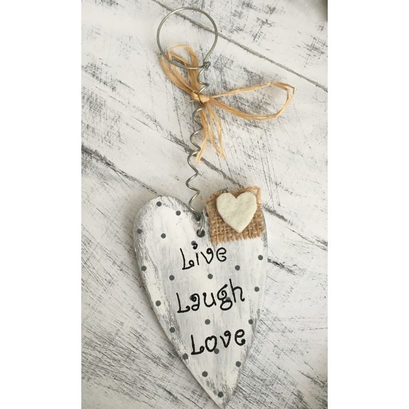 Μπομπονιέρα Γάμου Ξύλινη Καρδιά Μπρελόκ Λευκό Σαν Παλιό.