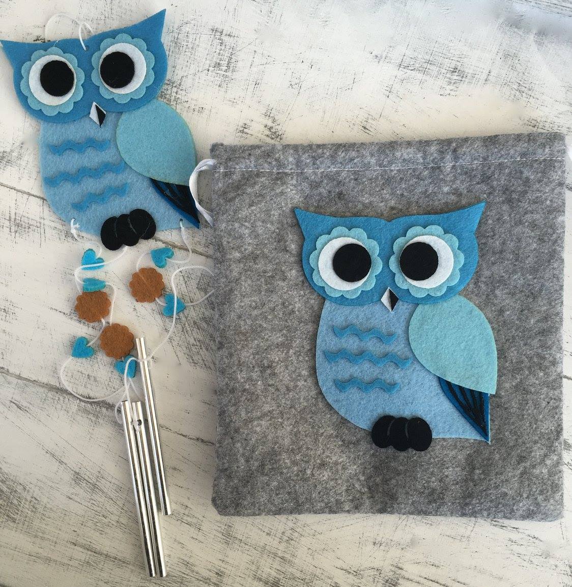 Μπομπονιέρα κουκουβάγια πουγγί από τσόχα.