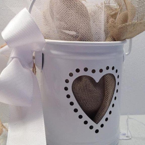 Μπομπονιέρα λευκό Κουβαδάκι με καρδιά για ρεσώ ή για μολυβοθήκη