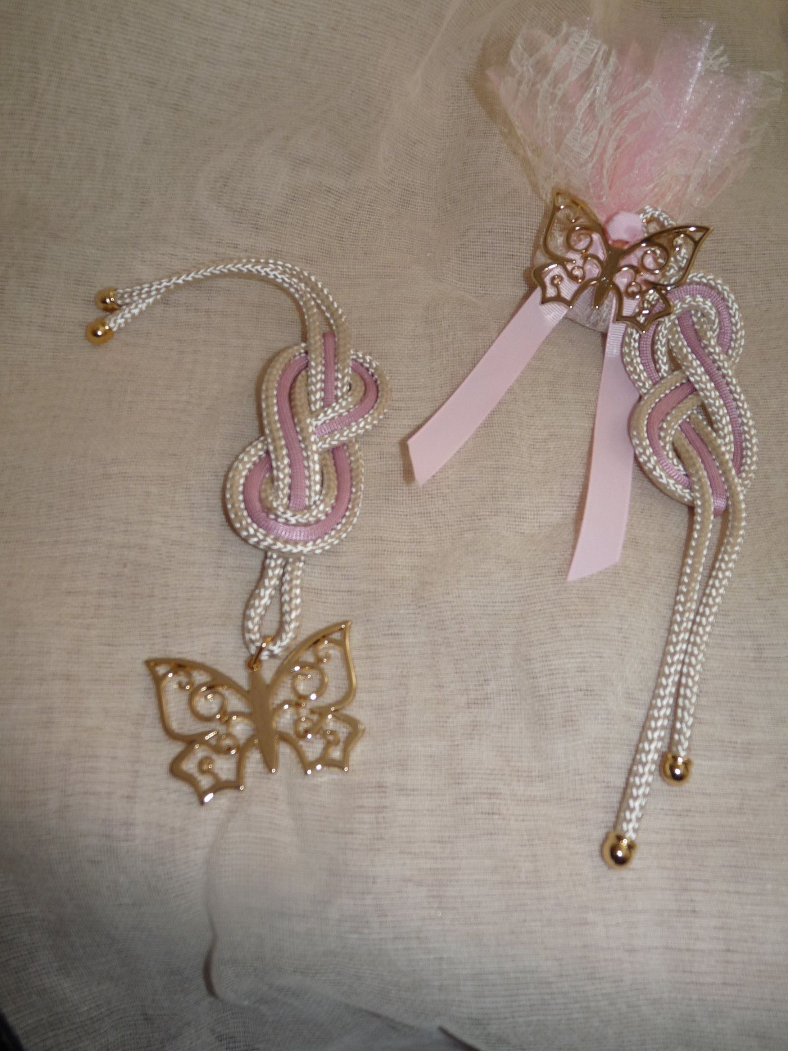 Μπομπονιέρα Βάπτισης γούρι με μεταλλική πεταλούδα σε χρυσό χρώμα, με