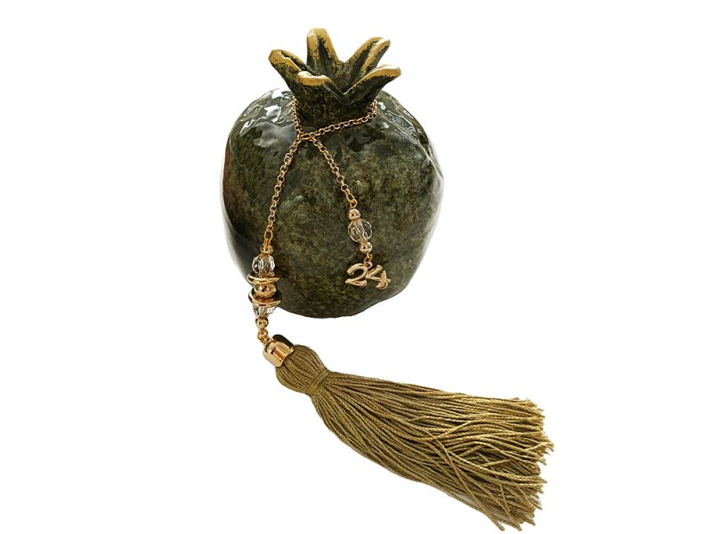 Διακοσμητικό επιτραπέζιο πορσελάνινο ρόδι με γούρι, χάντρες,