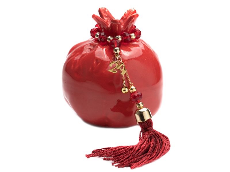 Διακοσμητικό επιτραπέζιο πορσελάνινο ρόδι με γούρι, χάντρες,
