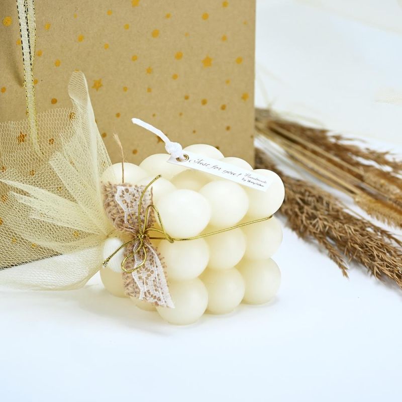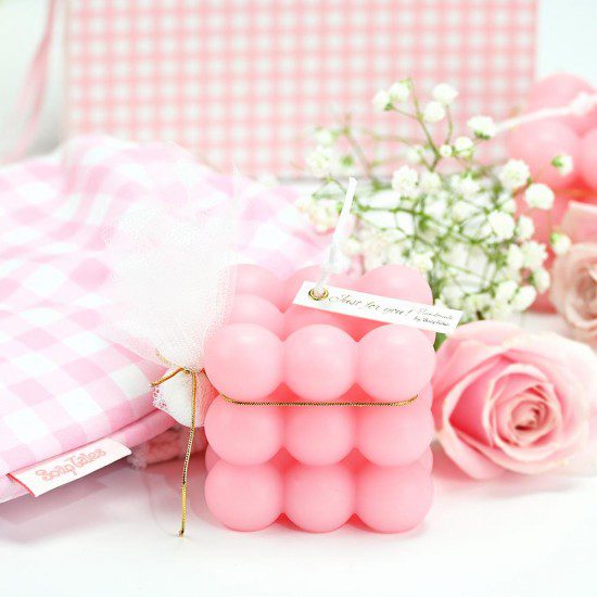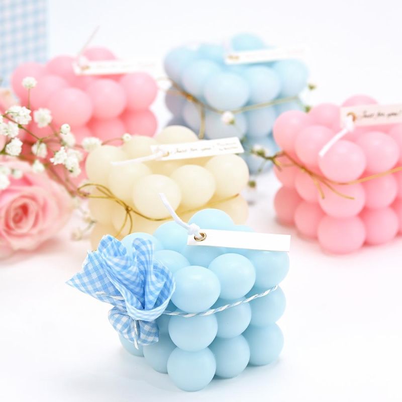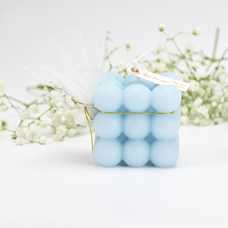 Μπομπονιέρα βάπτισης – γάμου Κερί bubble σιέλ με άρωμα citrus.