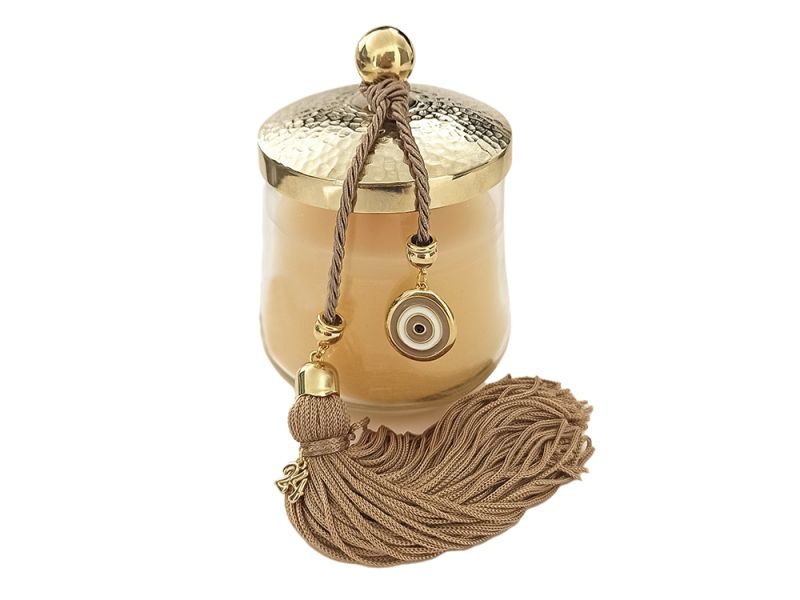 Διακοσμητικό κηροπήγιο με αρωματικό κερί & χρυσό σφυρήλατο καπάκι.
