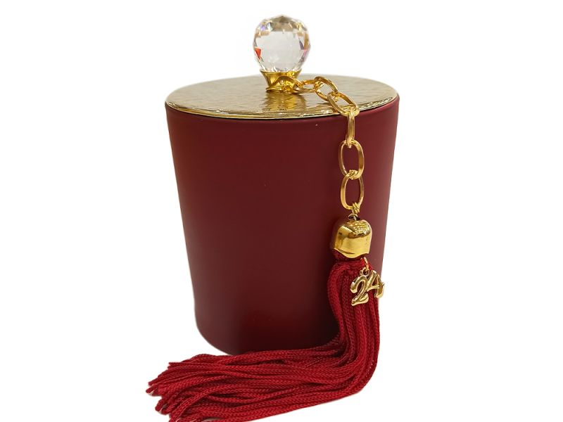 Κηροπήγιο Μπορντό Με Κρύσταλλο