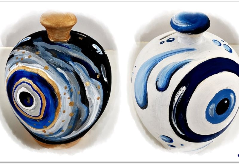 κουμπαράς ζωγραφισμένος στο χέρι με θέμα το μάτι. Μπορούμε να σας το φτιάξουμε στο χρώμα και στο θέμα της επιλογής σας.