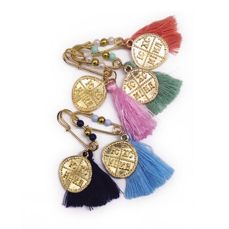 Μαρτυρικό επίχρυση παραμάνα με κωνσταντινάτο, χάντρες