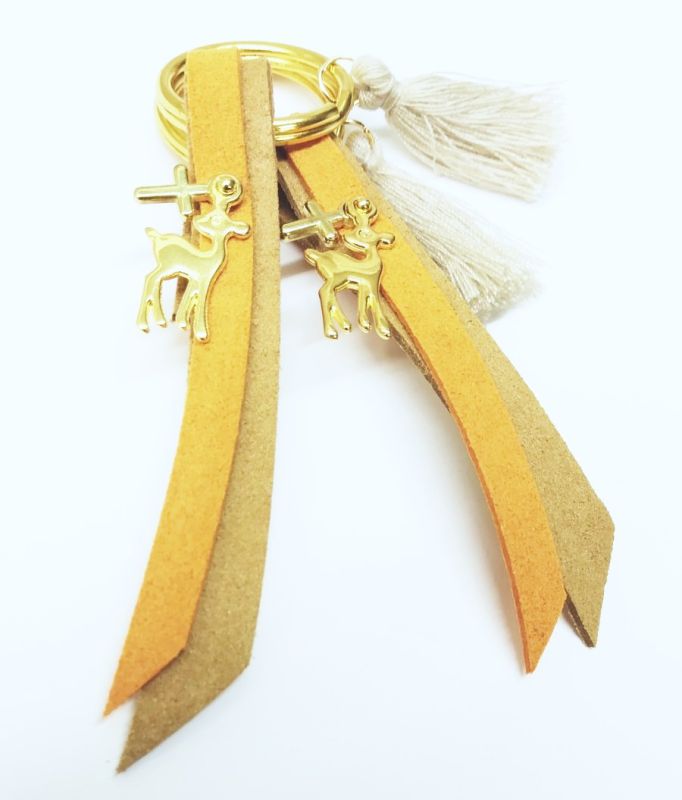 Μπρελόκ με μουσταρδί σουέτ κορδόνι και επίχρυσο ελαφάκι,