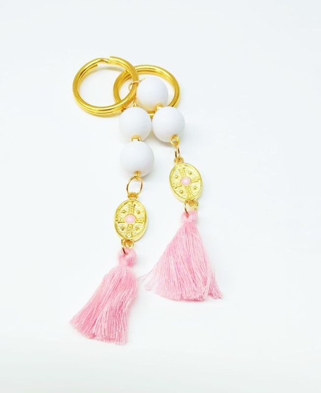 Μπρελόκ με χάντρες λευκές και κωσταντινάτο με σταυρό.