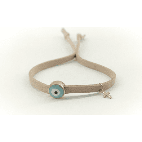 Μαρτυρικό Βραχιόλι σουέτ μπεζ με μάτι και σταυρό