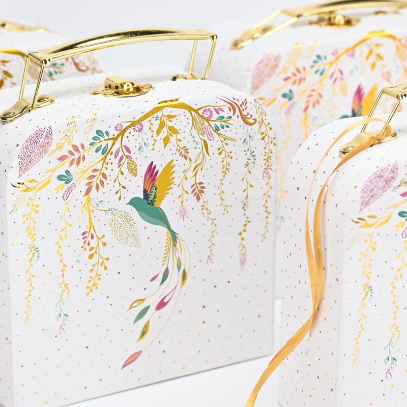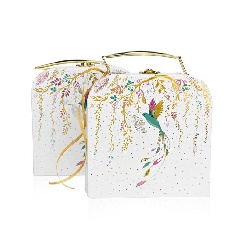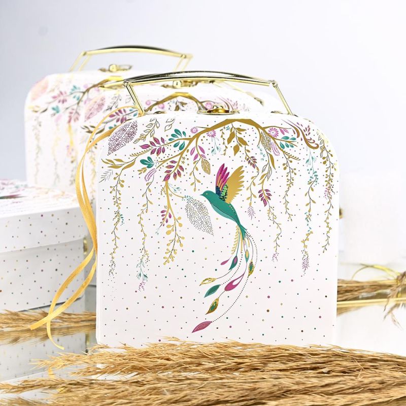 Μπομπονιέρα, Δώρο Βαλιτσάκι Λευκό Bird με χρυσό χερούλι και κούμπωμα.