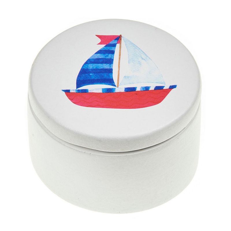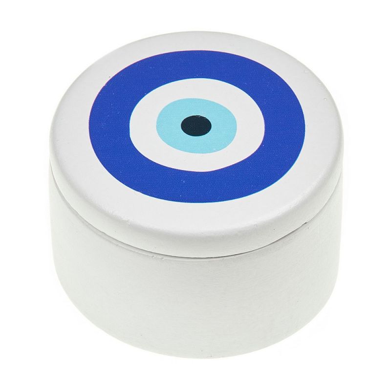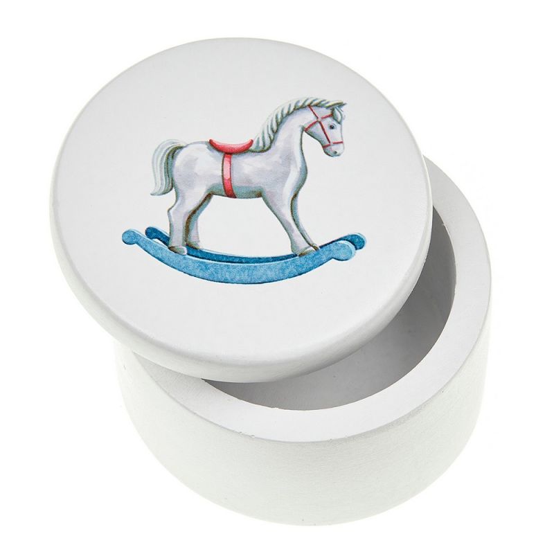 Γύψινη στρογγυλή μπιζουτιέρα με θεματική εκτύπωση.