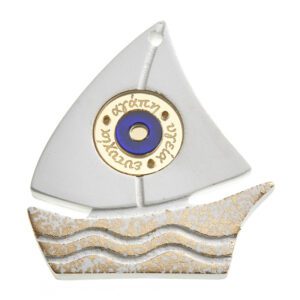 Μπομπονιέρα βάπτισης- γάμου Καράβι κεραμικό με ευχές.