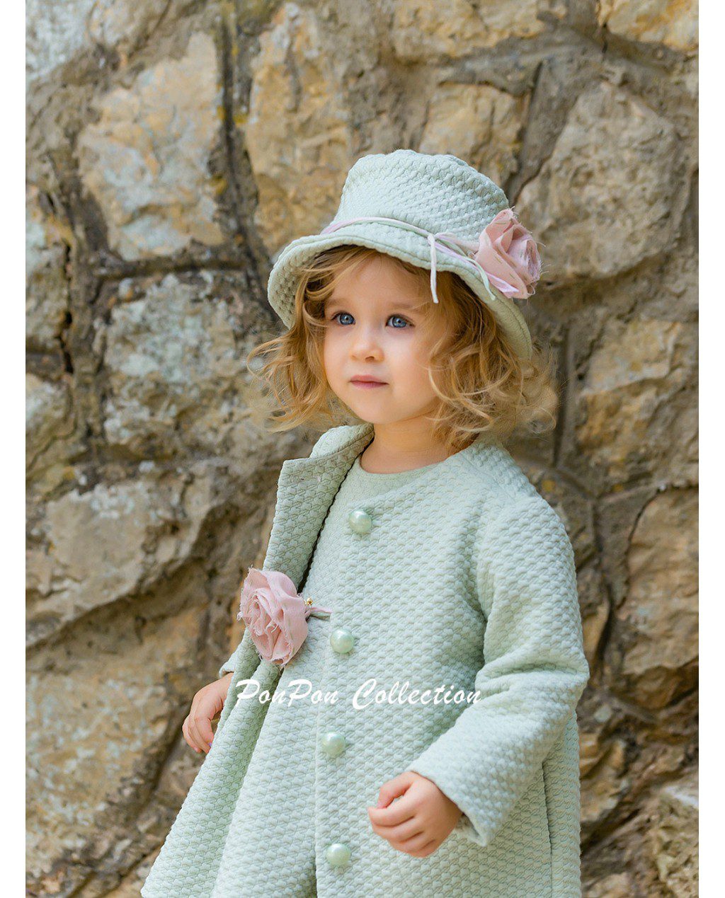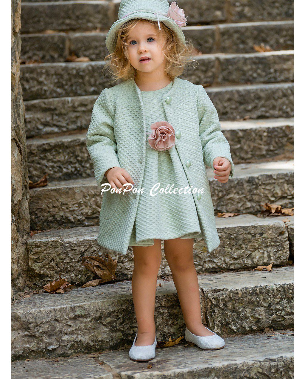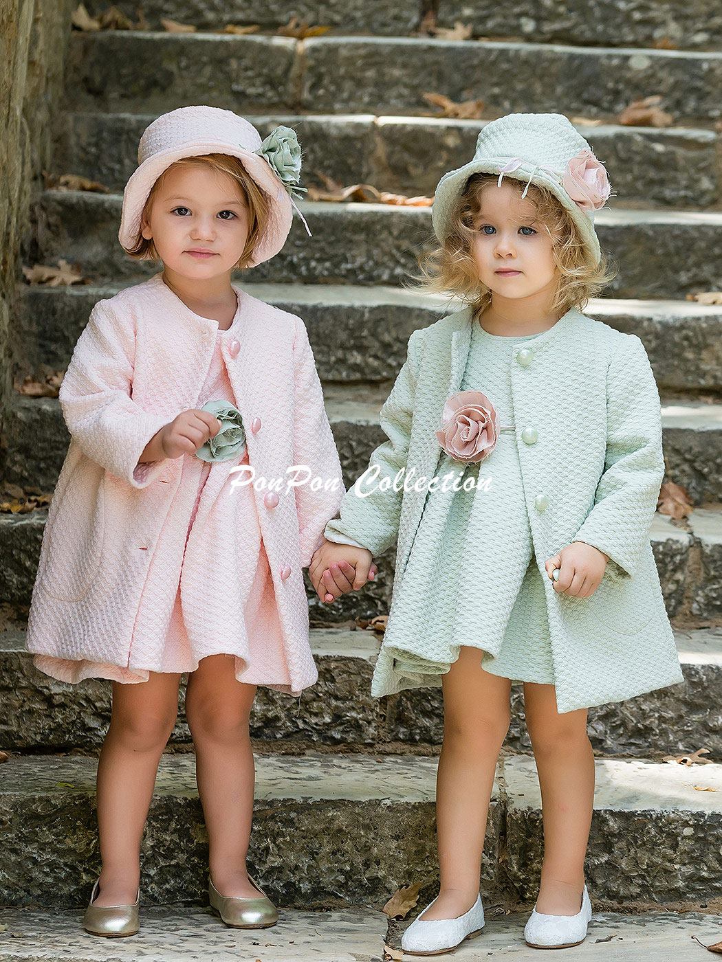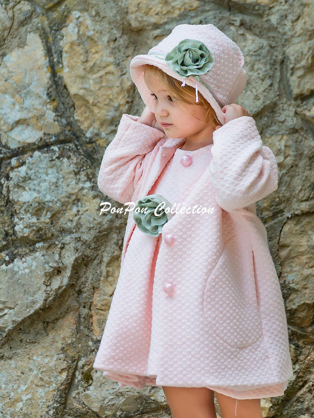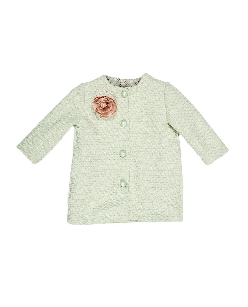 Παλτό από σύμμεικτο ύφασμα με ανάγλυφο σχέδιο διακοσμημένο με χειροποίητο λουλούδι .