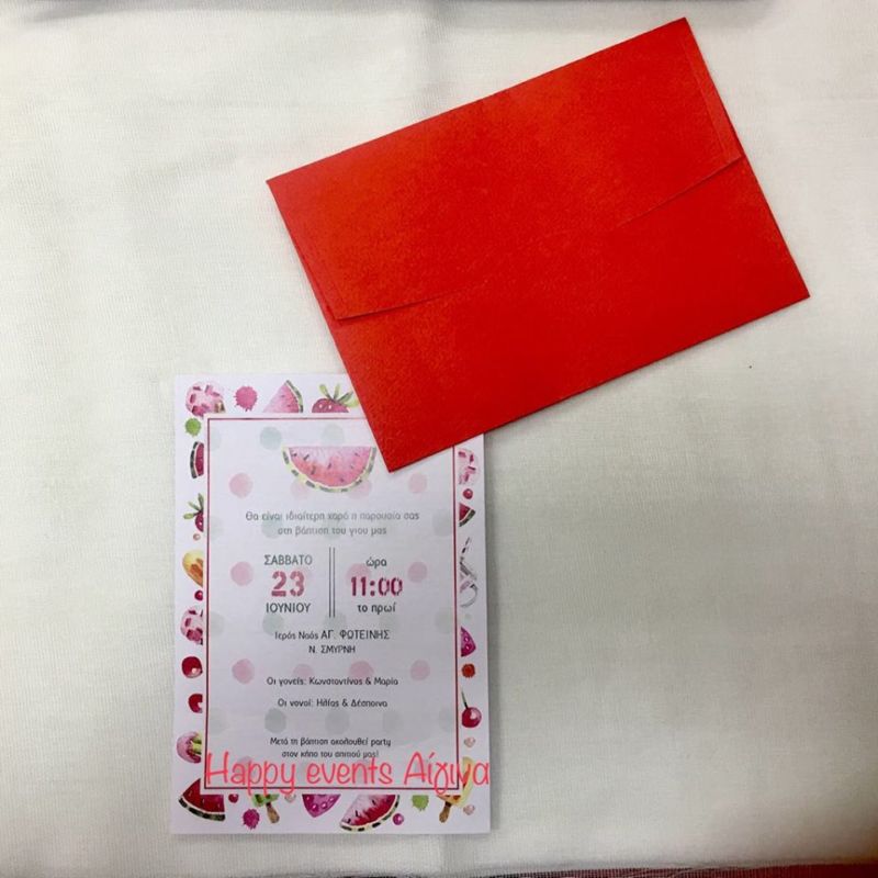 Προσκλητήριο Βάπτισης καλοκαιρινά φρούτα,για αγόρι και κορίτσι .