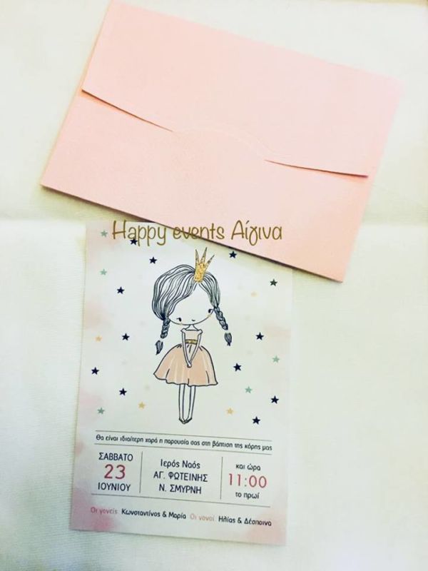 Προσκλητήριο βάπτισης με την αγαπημένη κοριτσάκι με κορώνα.