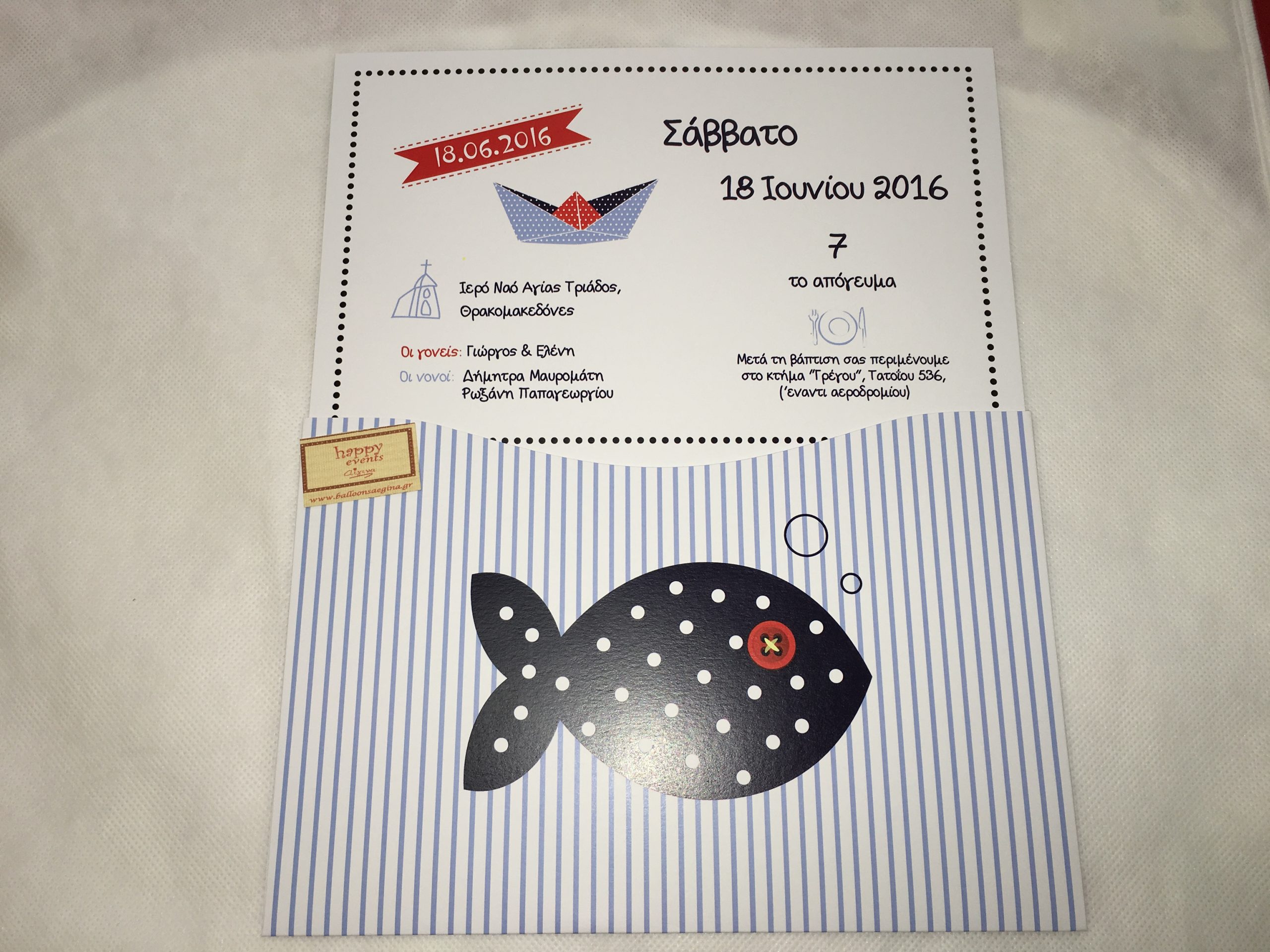 Προσκλητήριο βάπτισης αγόρι  Με Θέμα ψάρι.