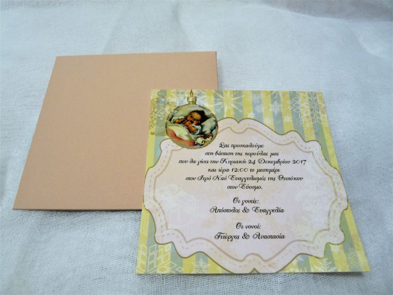 Προσκλητήριο Βάπτισης μωρό μέσα σε Χριστουγεννιάτικη Μπάλα