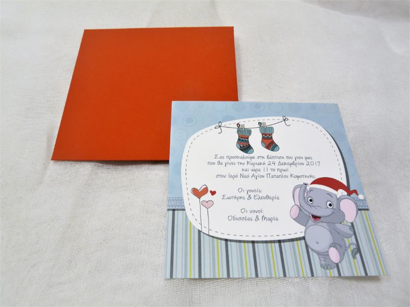 Προσκλητήριο Βάπτισης Γιορτινό Ελεφαντάκι 3299
