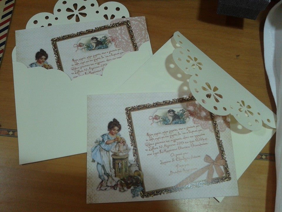 Ιδιαίτερο προσκλητήριο βάπτισης λευκός φάκελος δαντέλα, κοφτό