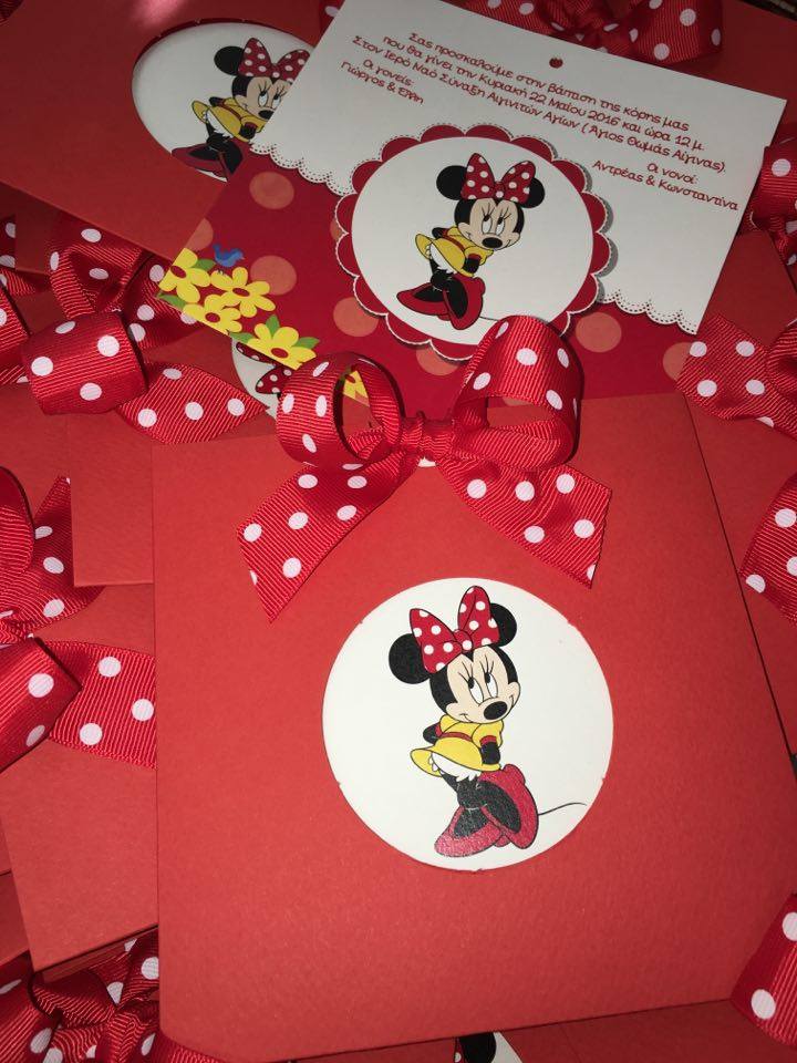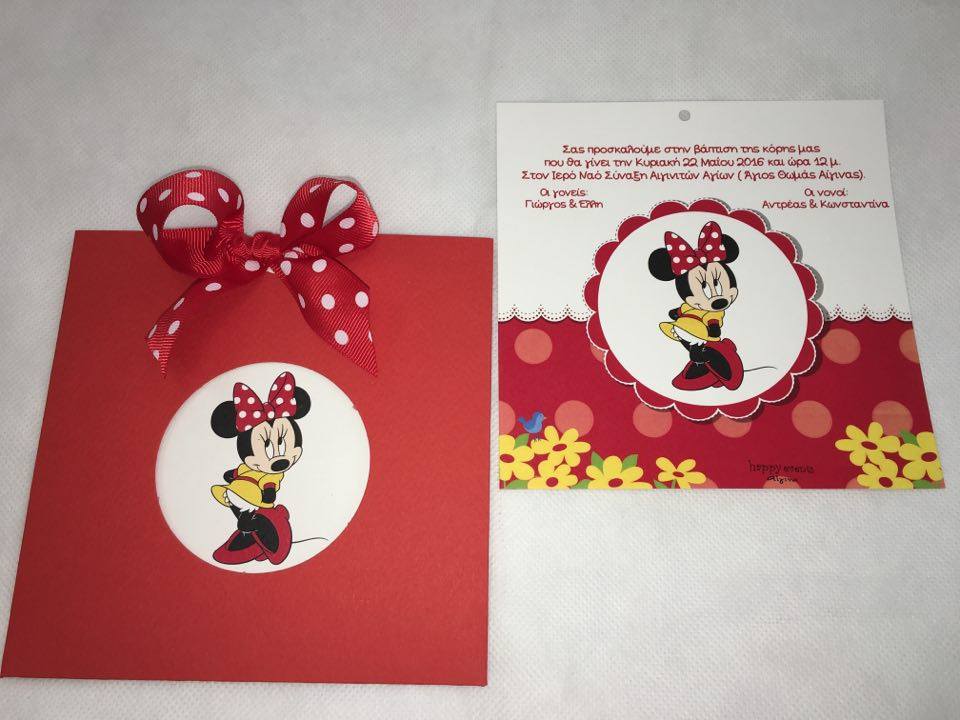 Προσκλητήριο βάπτισης σχέδιο μίνι φάκελος, συρταρωτός με κοπτικό στρογγυλό και φιόγκος από γκρο κόκκινη κορδέλα με λευκά πουά 2,50 cm