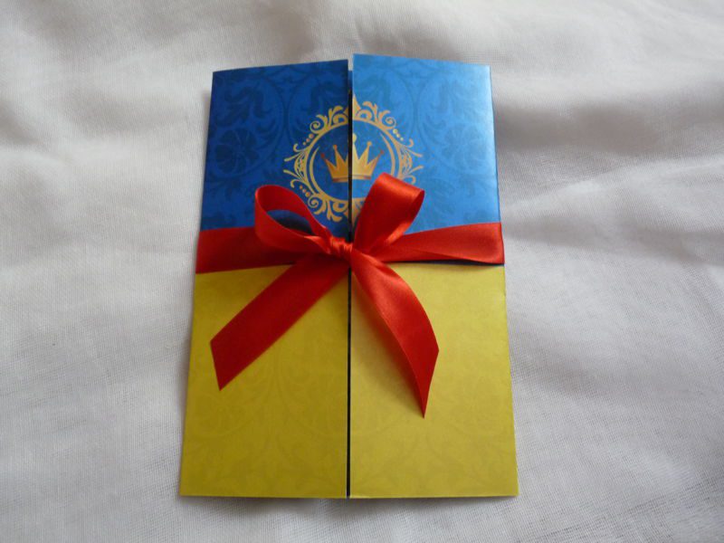Προσκλητήριο Τρίπτυχο Χιονάτη με σατέν κορδέλα κόκκινη 2,50cm