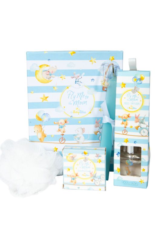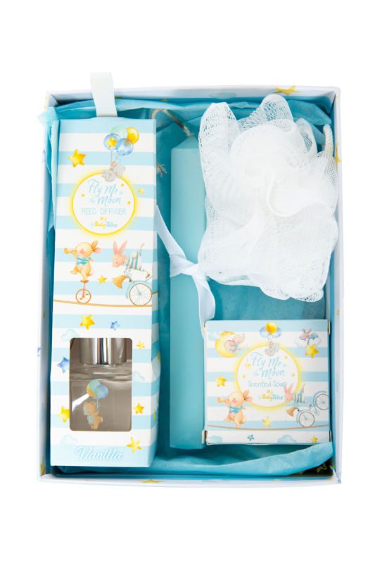 Συρταρωτό κουτί με δυο σαπουνάκια, αρωματικό χώρου 40ml σφουγγαράκι λαμπάδα και χαρτί αφής!