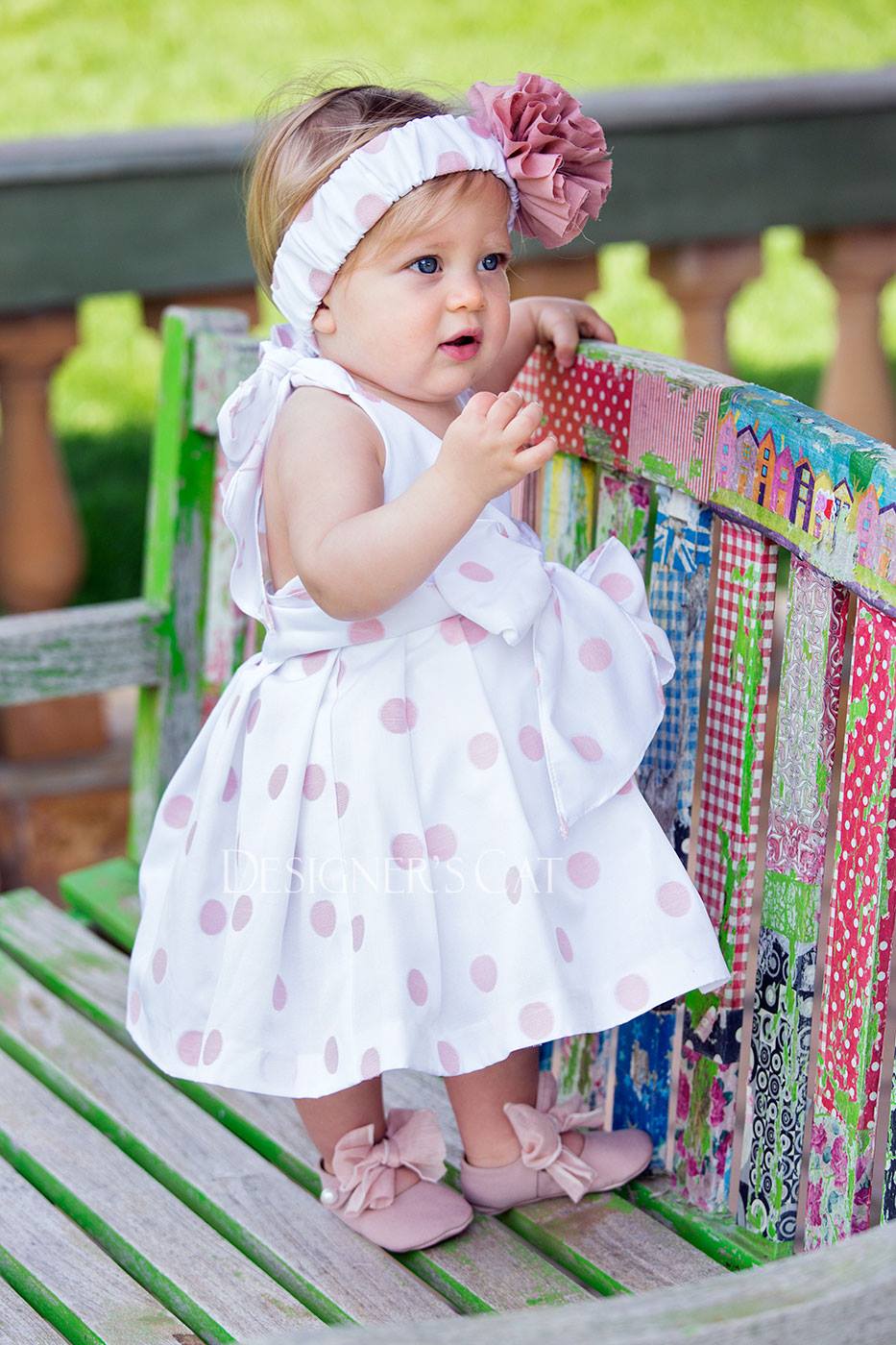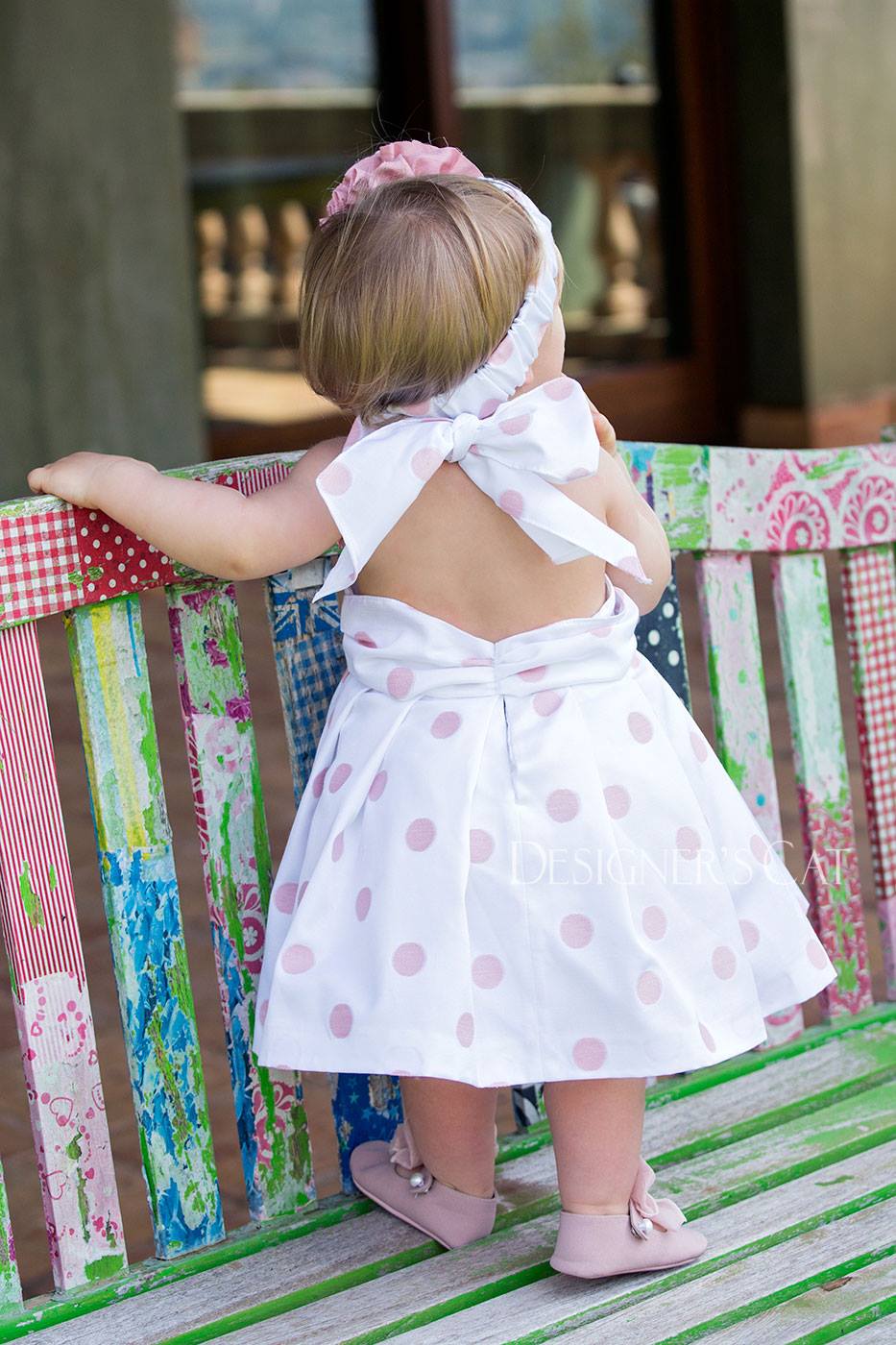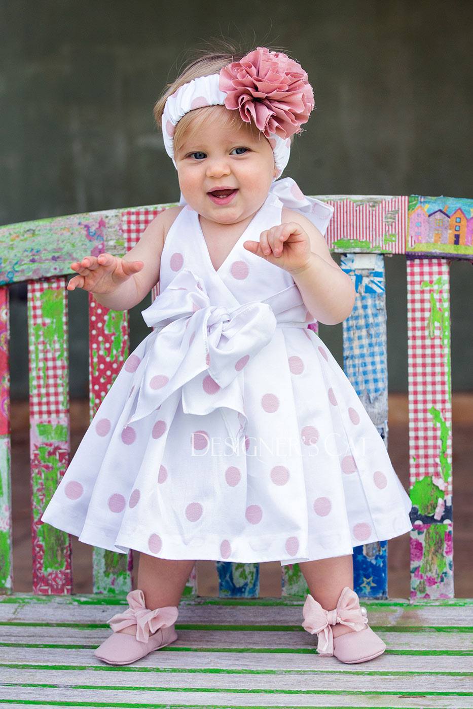 des.Vera Βαμβακερό φορεματάκι με ροζ πουά.Μπορεί να συνδυαστεί με ασορτί κορδέλα ή καπέλο. Διατίθεται σε μεγέθη από 6 έως 30 μηνών.