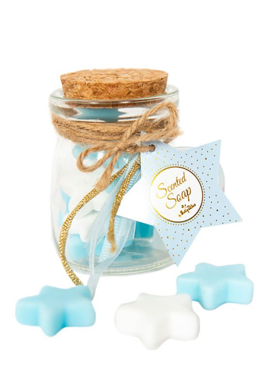 Βαζάκι με αστεράκια σαπουνάκια άσπρα & σιελ