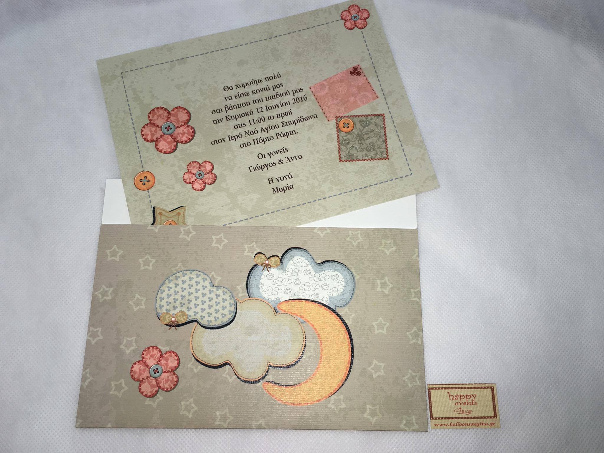 Vintage προσκλητήριο βάπτισης Κορίτσι Θέμα:Ουρανός,Αστεράκια ,Συννεφάκια,Φεγγαράκι.