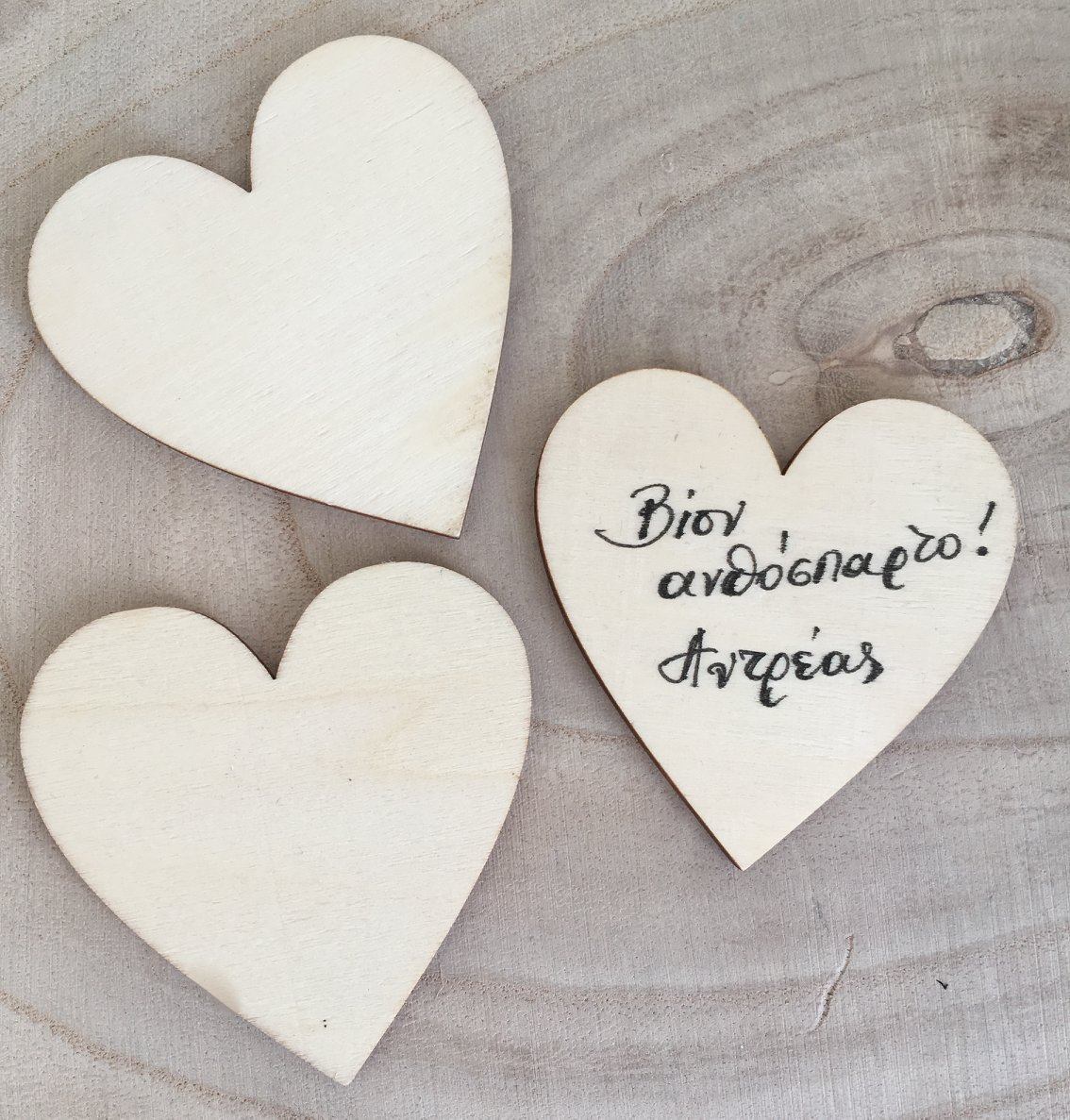 Ξύλινες Καρδιές Για Ευχές Σε Δύο Χρώματα Λευκές Και Στο Χρώμα Του Ξύλου