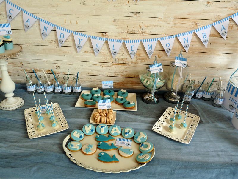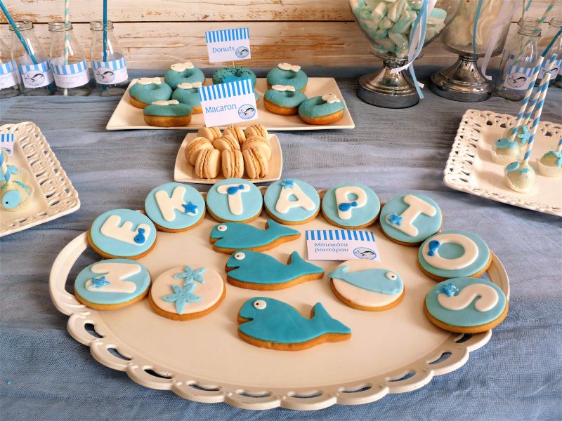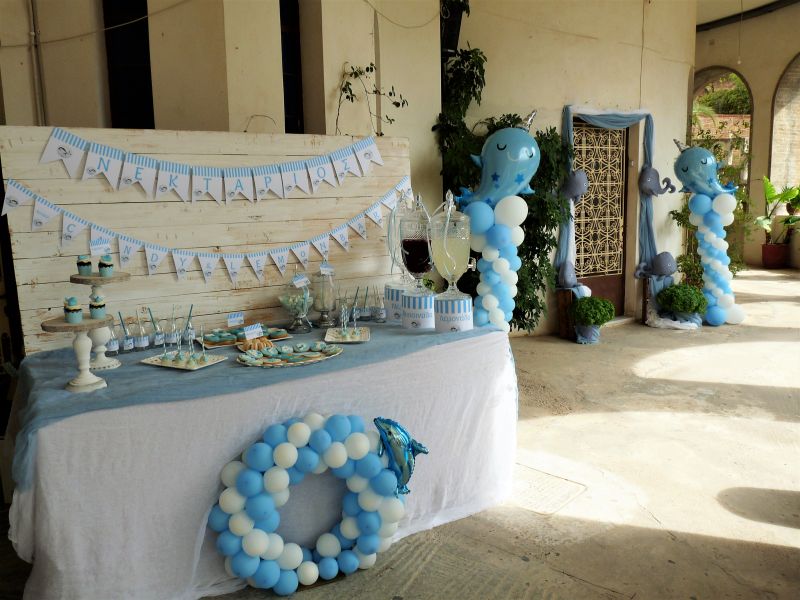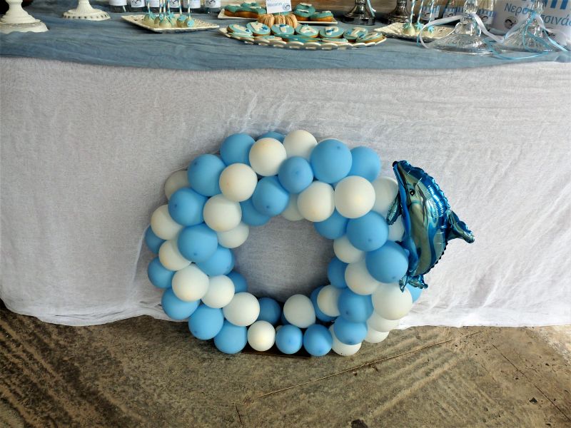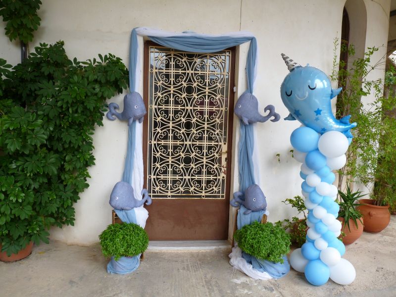 με υφασμάτινες φαλαινίτσες και κατασκευές με μπαλόνια στο θέμα της βάπτισης!