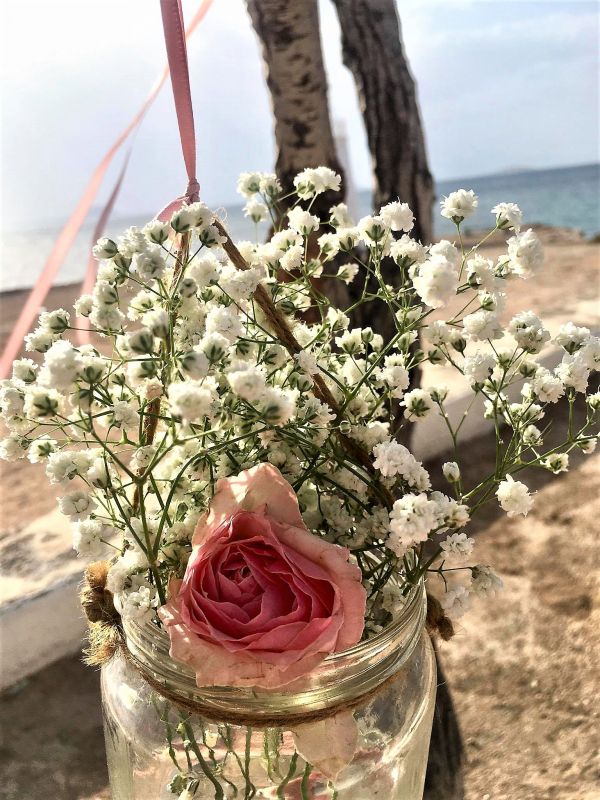 Στολίσαμε το εκκλησάκι με πανέμορφες συνθέσεις λουλουδιών και πλούσιες κορδέλες οι οποίες λικνίζονταν ανέμελα στο καλοκαιρινό αεράκι!!