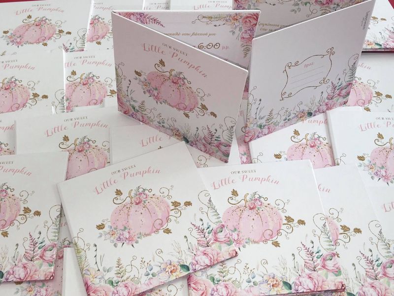 Χειροποίητες ροζ και χρυσές κολοκύθες παντού διακοσμούσαν τον χώρο!!