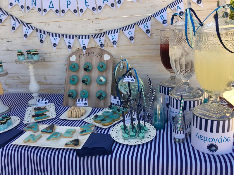 ένα πλούσιο candy bar με πολλά και διάφορα θεματικά γλυκά, γευστικότατη φρέσκια λεμονάδα και βυσσινάδα!