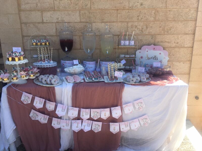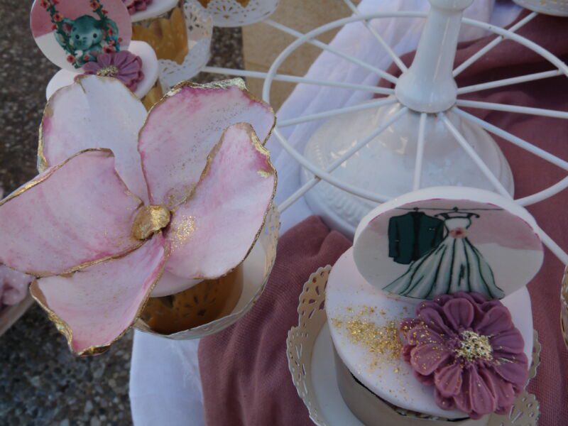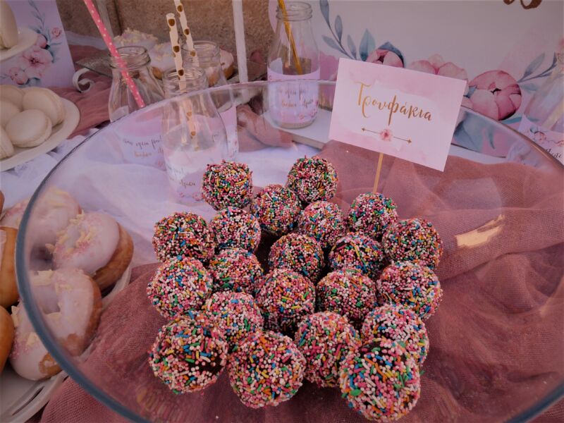 Την παράσταση έκλεψε το candy bar με κάθε λογής γλυκίσματα, με θέμα για τον γάμο αλλά και την βάπτιση, τονίζοντας το παιδικό στοιχείο με