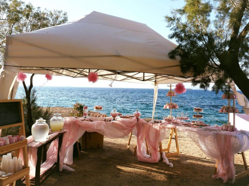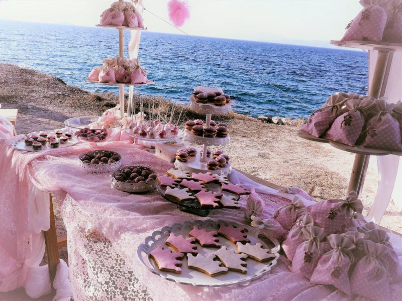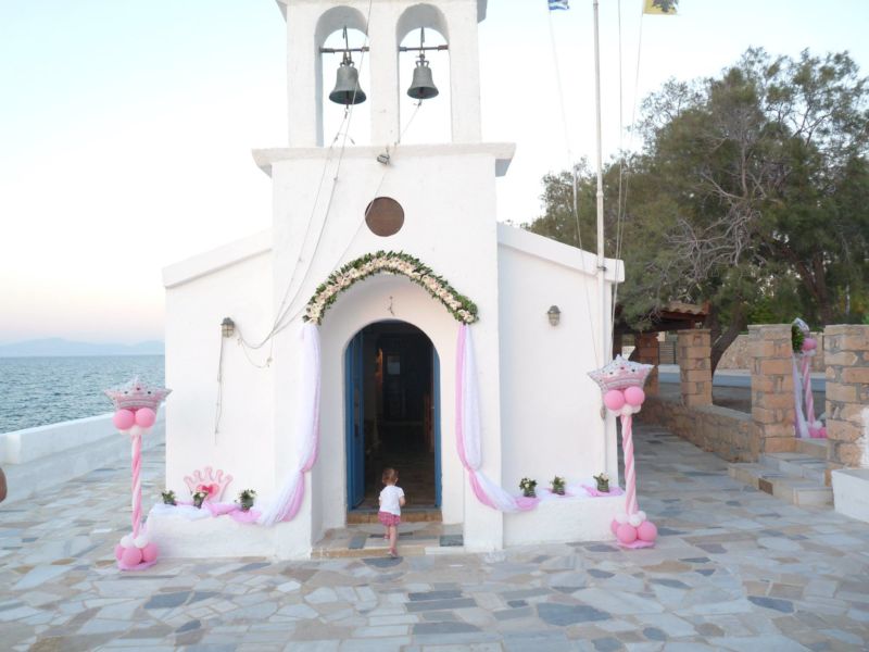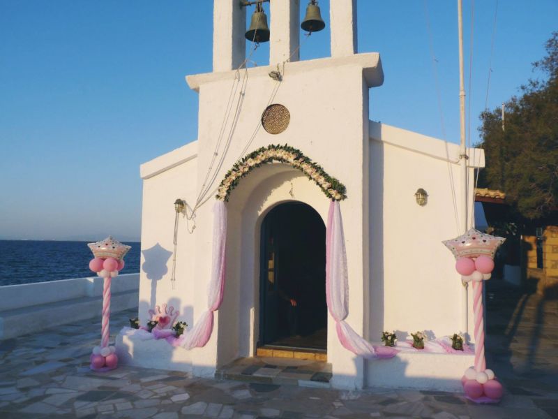 Η βάπτιση της Παναγιώτας!!!! Πριγκιπική… Επιθυμία του μπαμπά της της μαμάς της αλλά και της γιαγιάς Παναγιώτας, της οποίας πήρε και το όνομα η μικρή νεοφώτιστη. Ήθελαν αυτή η μέρα να είναι ξεχωριστή να μη λείπει τίποτα….Αναλάβαμε τα πάντα για εκείνη την όμορφη μέρα. Το προσκλητήριο, την μπομπονιέρα,,την διακόσμηση της εκκλησίας με μπαλόνια, ανθοστολισμό, Candy bar με φρέσκια δροσερή λεμονάδα και νερό, Candy table με κάθε είδους ιδιαίτερο,ολόφρεσκο,γευστικό γλυκό.Επιλέξαμε γάζα και πλούσια δαντέλα σε ροζ και λευκό χρώμα. Το αποτέλεσμα τόσο όμορφο… τόσο chic!!!!! Εμείς με την σειρά μας να ευχαριστήσουμε και να ευχηθούμε στον Σωτήρη και την Έφη, αλλά και στην γιαγιά Νότα, να ζήσει η Παναγιώτα και να την καμαρώσουν όπως έχουν ονειρευτεί!!!!!