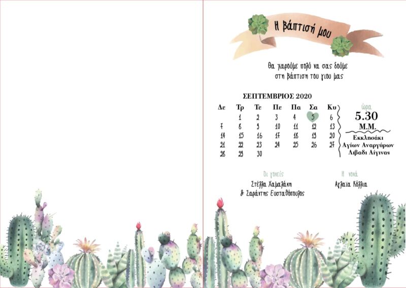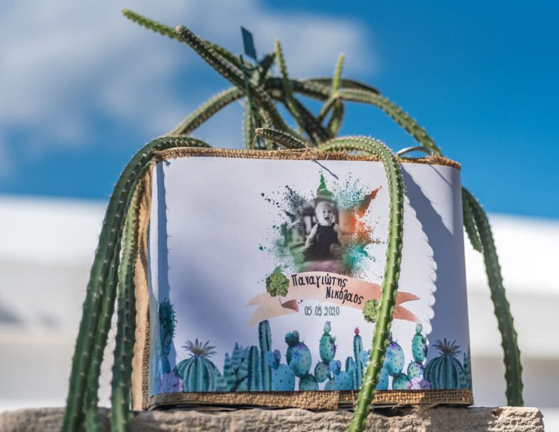 Η Βάπτιση Του Παναγιώτη Νικόλαου Με θέμα Κάκτοι, στους Αγίους Αναργύρους στην Αίγινα.