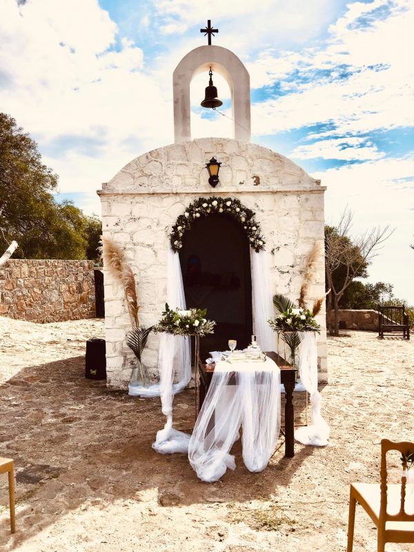 Kyriakos and Karolina chose to have their wedding in the picturesque church of Villa Archangelos in the picturesque Sfendouri which is located a few kilometers at the height of Perdika in Aegina.